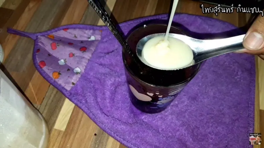 3. ใส่นมข้นหวานลงไป คนให้เข้ากันดี