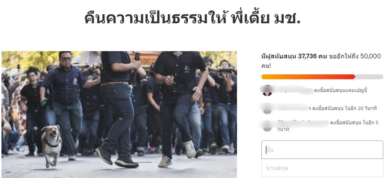 ทะลุ 3 หมื่นราย ชาวเน็ตร่วมแคมเปญรณรงค์ร้อง คืนความเป็นธรรมให้ พี่เตี้ย มช.