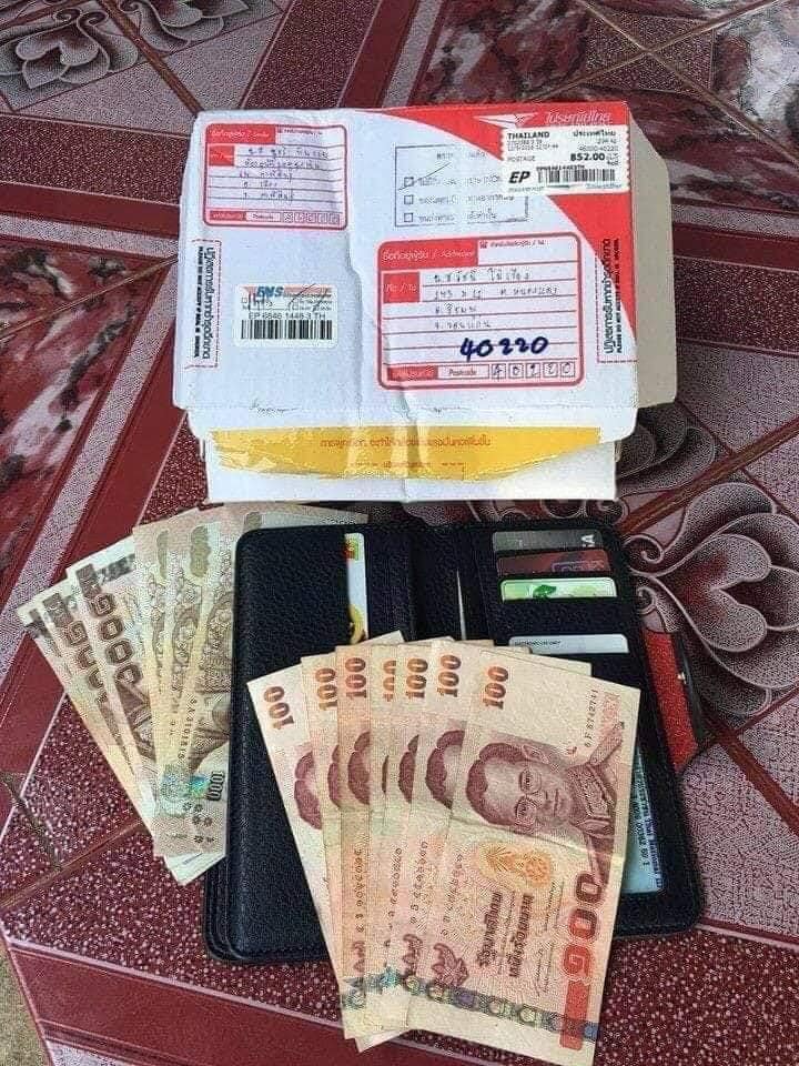 กลับถึงบ้านหากระเป๋าสตางค์ไม่เจอ ไม่รู้ไปทำตกหายที่ไหน ทำใจแล้วค่ะว่า ยังงัยก็ไม่ได้คืน วันนี้มีพัสดุส่งมาถึงบ้าน ของทุกอย่างอยู่ครบ