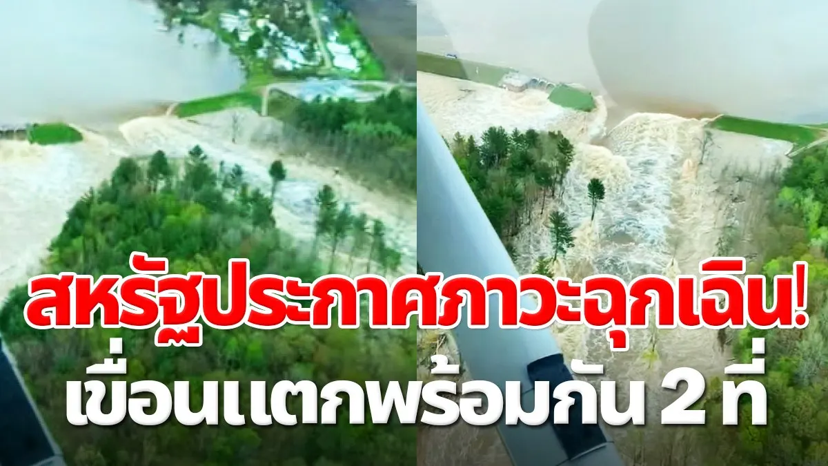 สหรัฐฯประกาศภาวะฉุกเฉิน หลังเขื่อนแตกพร้อมกัน 2 แห่ง คนหนีบ้านเรือนจมอยู่ใต้น้ำ