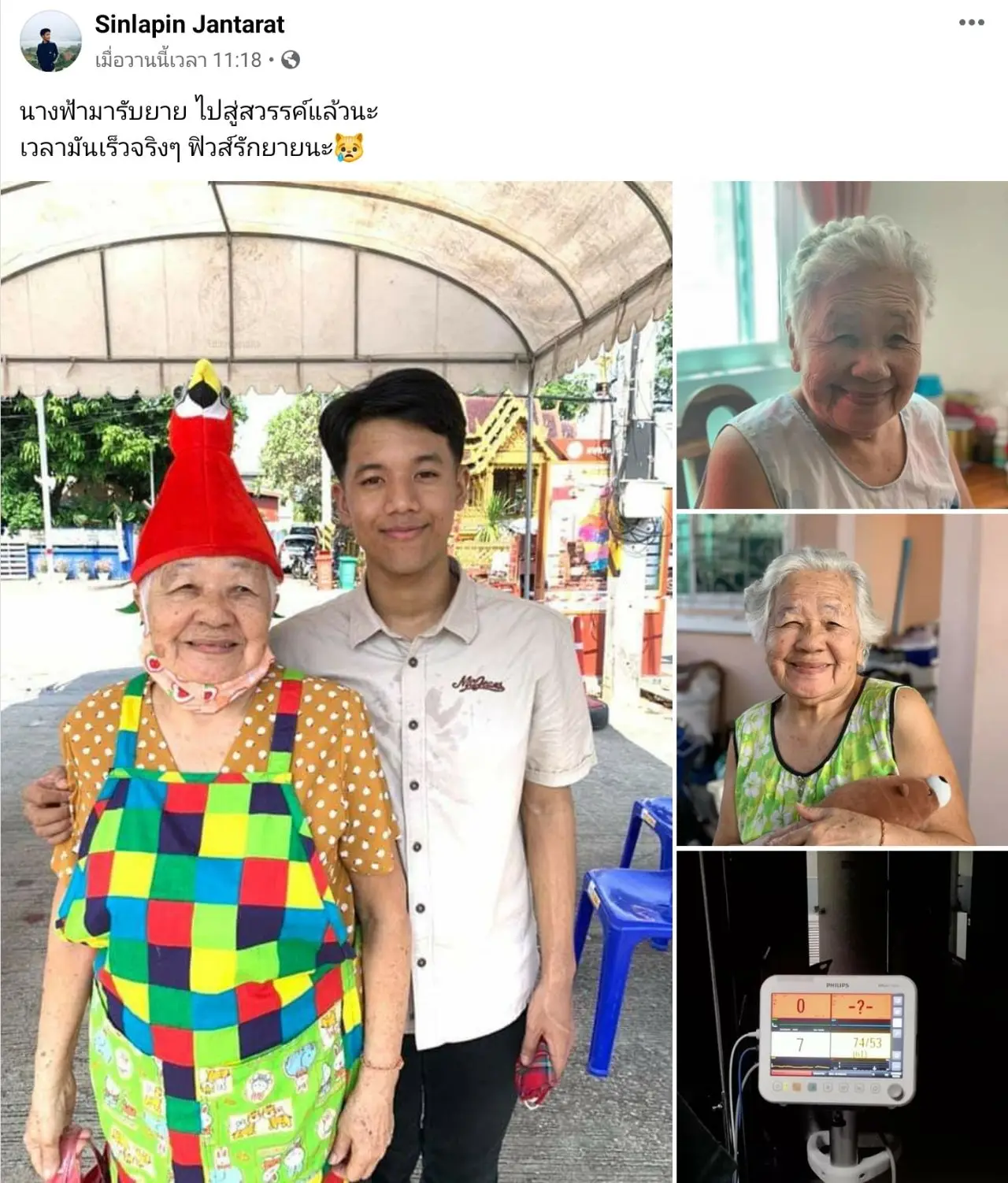 เมื่อวันที่ 20 พฤษภาคม 2563 เฟสบุ๊ค Sinlapin Jantarat ได้โพสข้อความสุดเศร้า ถึงคุณยาย