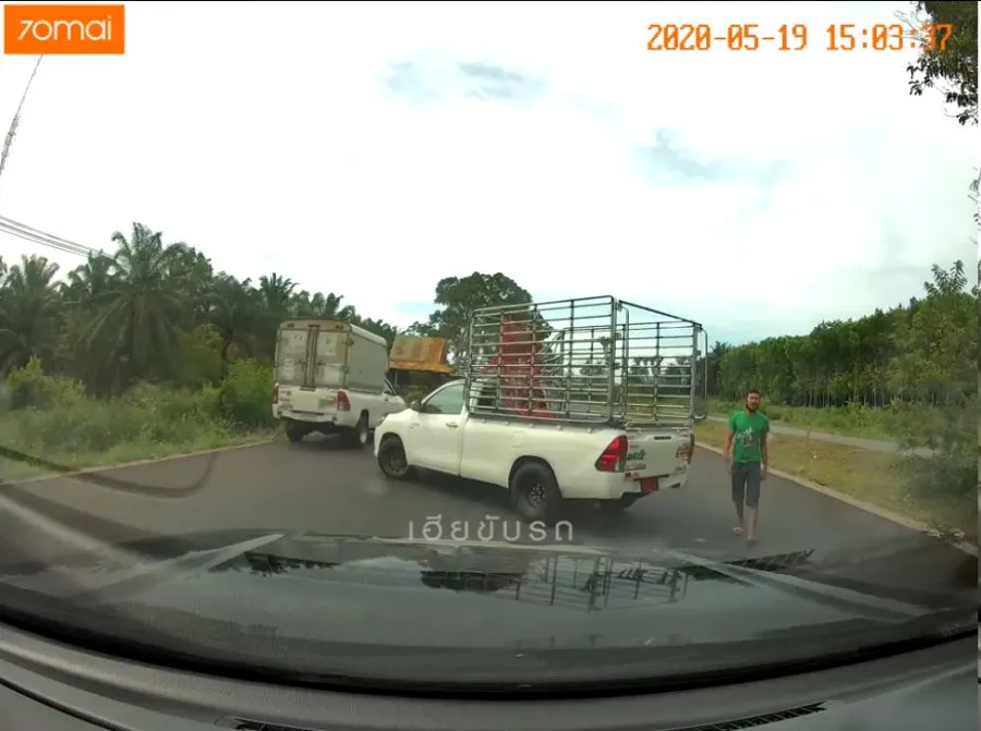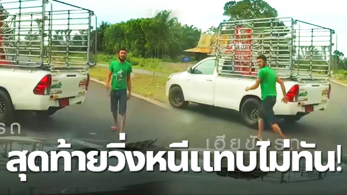 กระบะแช่ขวา หัวร้อนโดนขับจี้ตูด จอดขวางจะเอาเรื่อง สุดท้ายคดีพลิก วิ่งแทบไม่ทัน