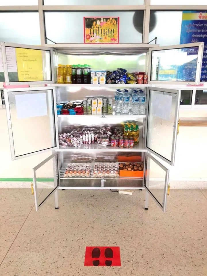⭐️⭐️เป็นอีกหนึ่งไอเดียดีดีที่เกิดขึ้นในสังคมไทย ที่เราทุกคนต้องประสบกับผลกระทบจากการแพร่ระบาดของโรคโควิด 19 นี้คือ”ตู้ปันสุข”ของโรงพยาบาลถ้ำพรรณรา ที่เกิดจากความร่วมมือของบรรดานักรบชุดขาว แพทย์ พยาบาล บุคลากรของโรงพยาบาลถ้ำพรรณรา ที่มอบให้กับผู้ป่วยที่มาตรวจรักษา รวมถึงประชาชนที่ได้รับผลกระทบจากการแพร่ระบาดของโรคโควิด 19