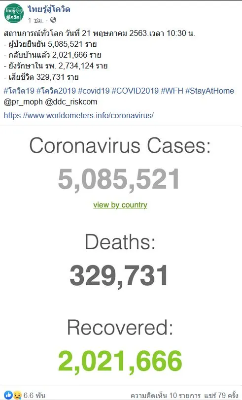 สถานการณ์ทั่วโลก วันที่ 21 พฤษภาคม 2563.เวลา 10:30 น.