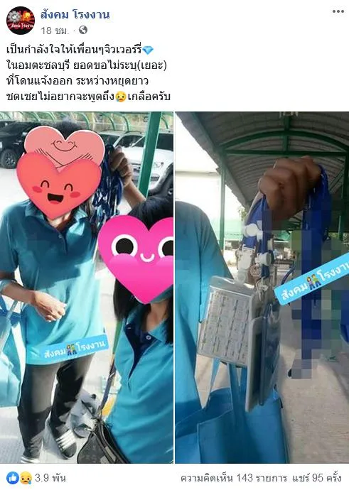 21 พฤษภาคม 2563 เพจ สังคม โรงงาน ได้โพส ภาพ และข้อความแสนเศร้า หลัง พนักงาน โดนออกคัดออกกะทันหันนับร้อยคน