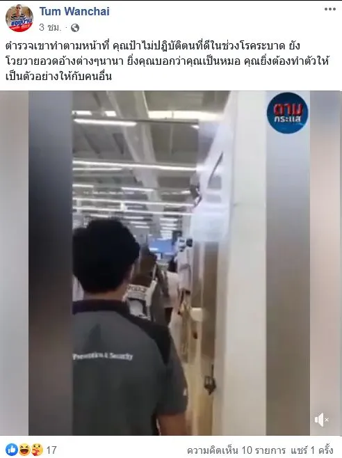 ตำรวจเขาทำตามหน้าที่ คุณป้าไม่ปฎิบัติตนที่ดีในช่วงโรคระบาด ยังโวยวายอวดอ้างต่างๆนานา ยิ่งคุณบอกว่าคุณเป็นหมอ คุณยิ่งต้องทำตัวให้เป็นตัวอย่างให้กับคนอื่น
