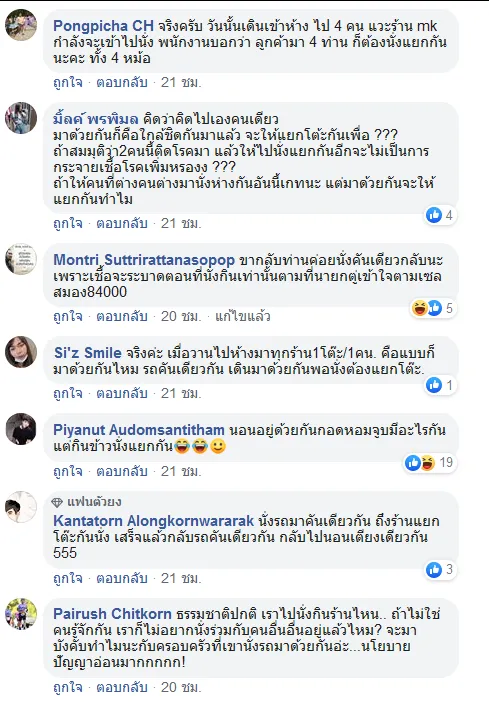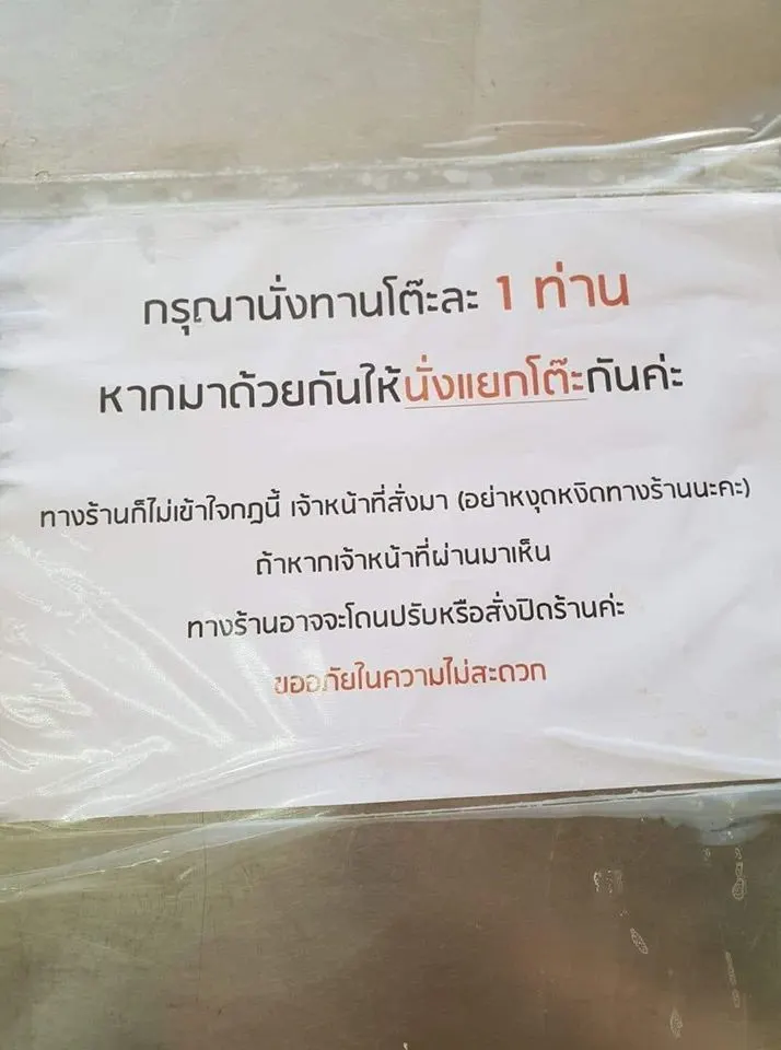 ชาวเน็ตถกเดือด! ประเด็น การทานอาหารโต๊ะ ละ 1 คน ถ้ามาด้วยกันให้นั่งแยกโต๊ะ