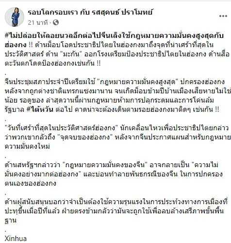 จีนประชุมสภาประจำปีเตรียมใช้ "กฎหมายความมั่นคงสูงสุด" ปกครองฮ่องกง หลังจากถูกต่างชาติแทรกแซงมานาน จนเกิดม็อบข้ามปีบ้านเมืองเสียหายไม่ใช่น้อย รอดูของ #ไต้หวัน ต่อไป คาดน่าจะต้องเดินตามรอยฮ่องกงมาติดๆ เช่นกัน !!
