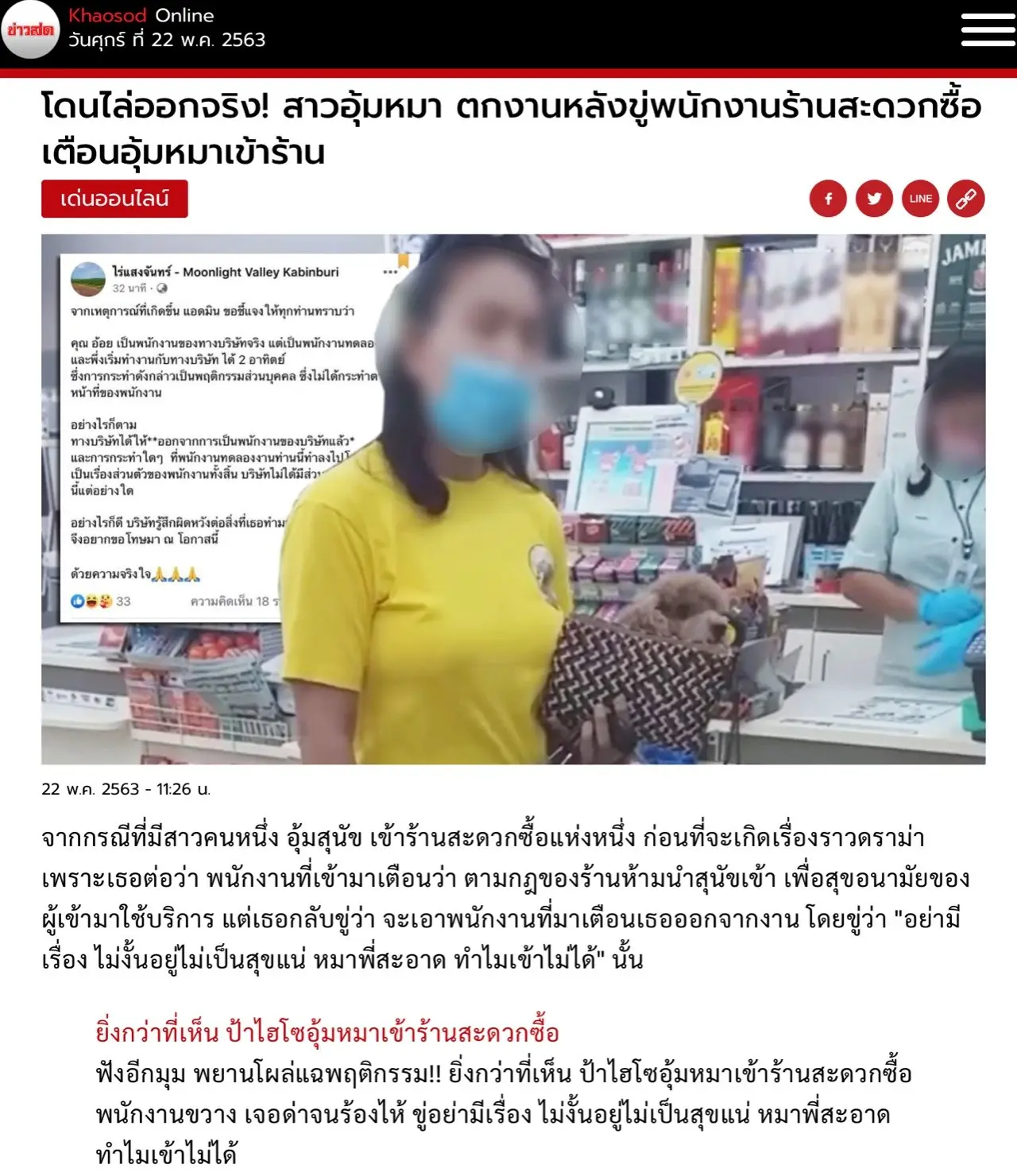 ไล่ออกแล้ว ชาวเน็ตถล่มยับ หลัง ป้ากร่าง อุ้มหมาเข้าร้านสะดวกซื้อ