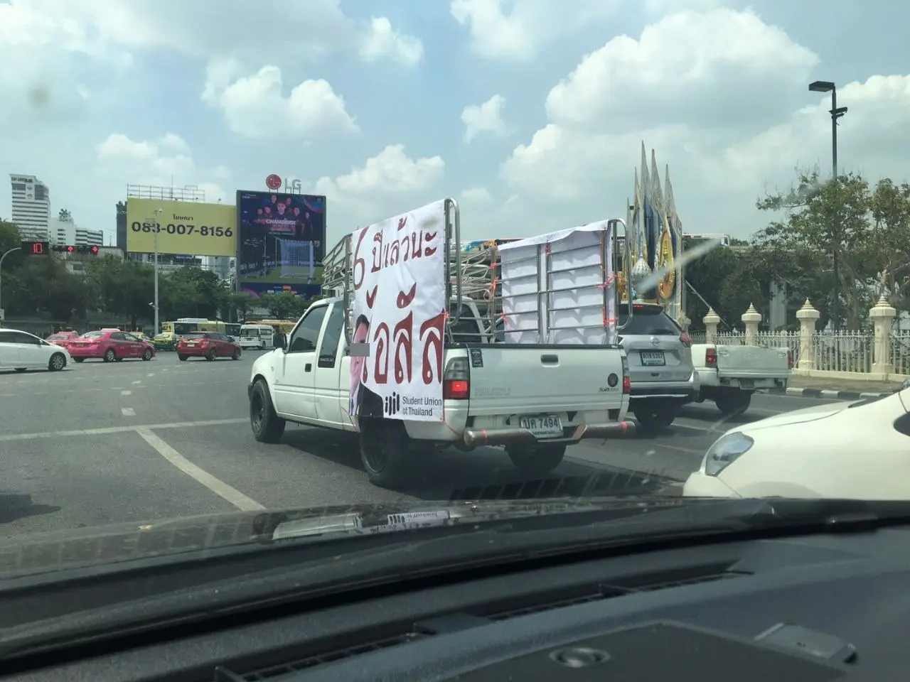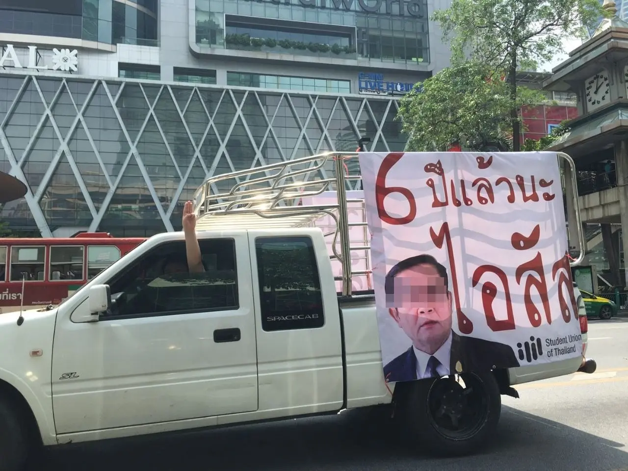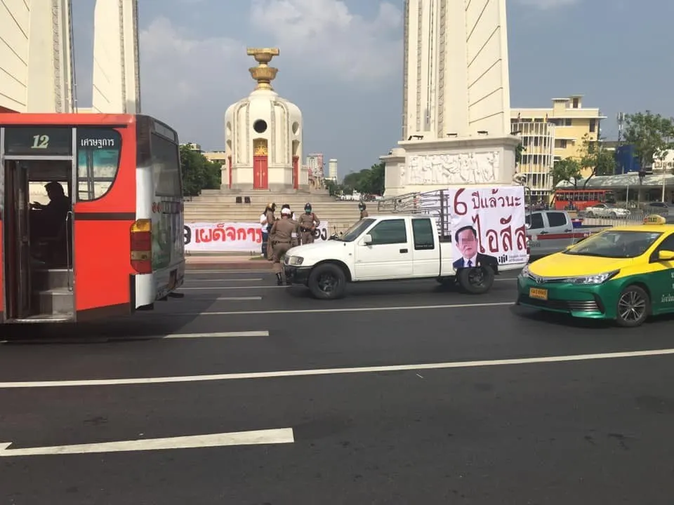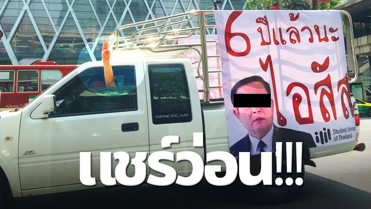 แชร์ว่อน! รถกระบะติดป้ายด่า! ชู 3 นิ้ว ในวันครอบ 6 ปี รัฐประหารของ คสช.