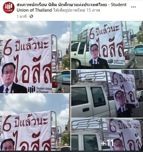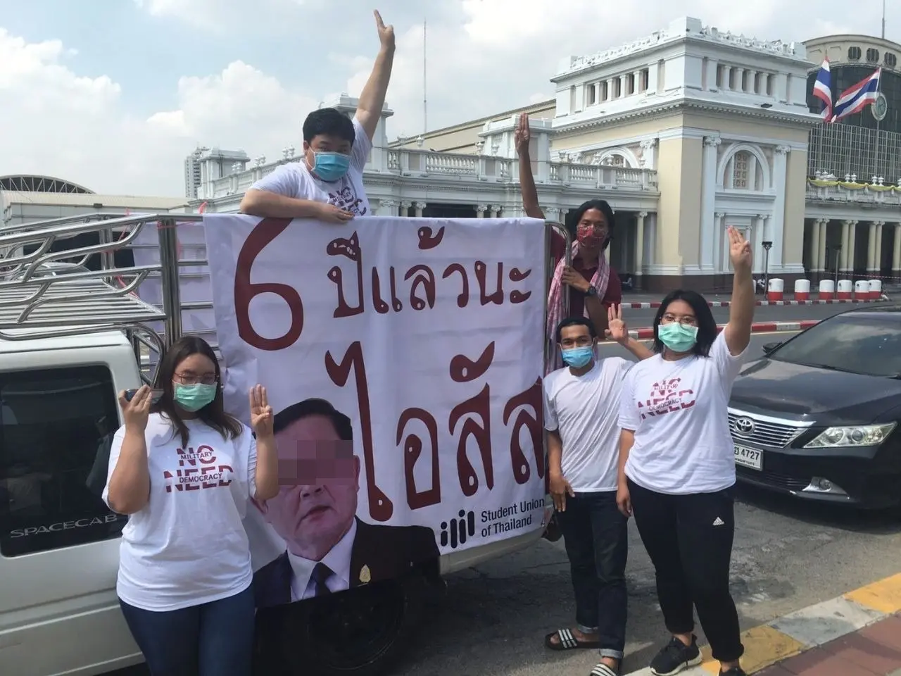 22 พ.ค. 2563 เฟซบุ๊ก สหภาพนักเรียน นิสิต นักศึกษาแห่งประเทศไทย - Student Union of Thailand แชร์ภาพ รถติดป้าย เนื่องในวันครบรอบ 6 ปี การรัฐประหาร คสช. โดยป้ายเขียนข้อความสุดแรง พร้อมติดรูป ขับไปยังบริเวณอนุสาวรีย์ชัยสมรภูมิ พร้อมชู 3 นิ้ว และได้นำป้ายไปติดโดยเขียนว่า "2563 เผด็จการครองเมือง"ที่บริเวณอนุสาวรีย์รัฐธรรมนูญอีกด้วย หลังจากทางเพจฯ โพสต์ภาพได้ไม่นาน ก็มีคนแห่แชร์ภาพดังกล่าวต่อไปเป็นจำนวนมาก