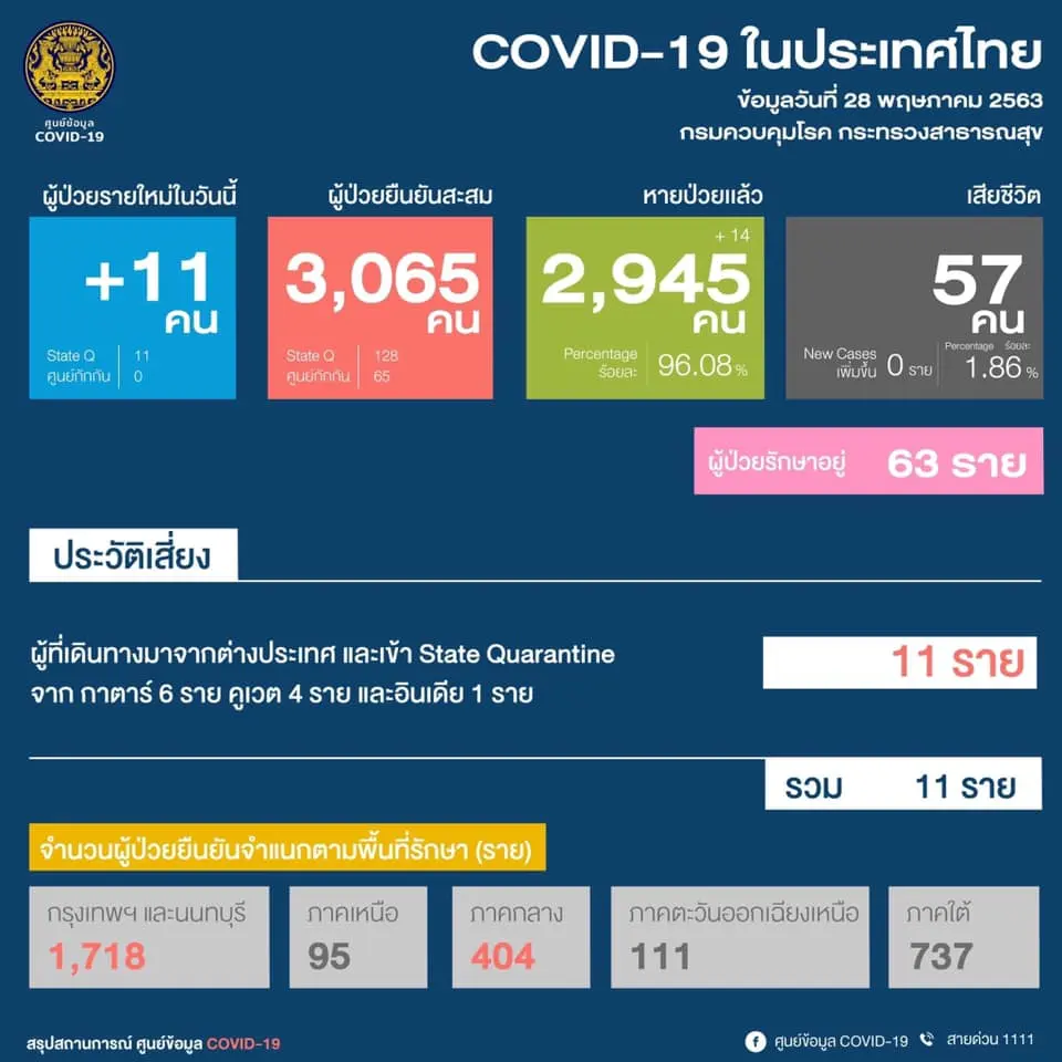 วันนี้ 28 พ.ค. 2563 ศูนย์บริหารสถานการณ์การแพร่ระบาดของโรคติดเชื้อไวรัสโคโรนา 2019 (ศบค.)
