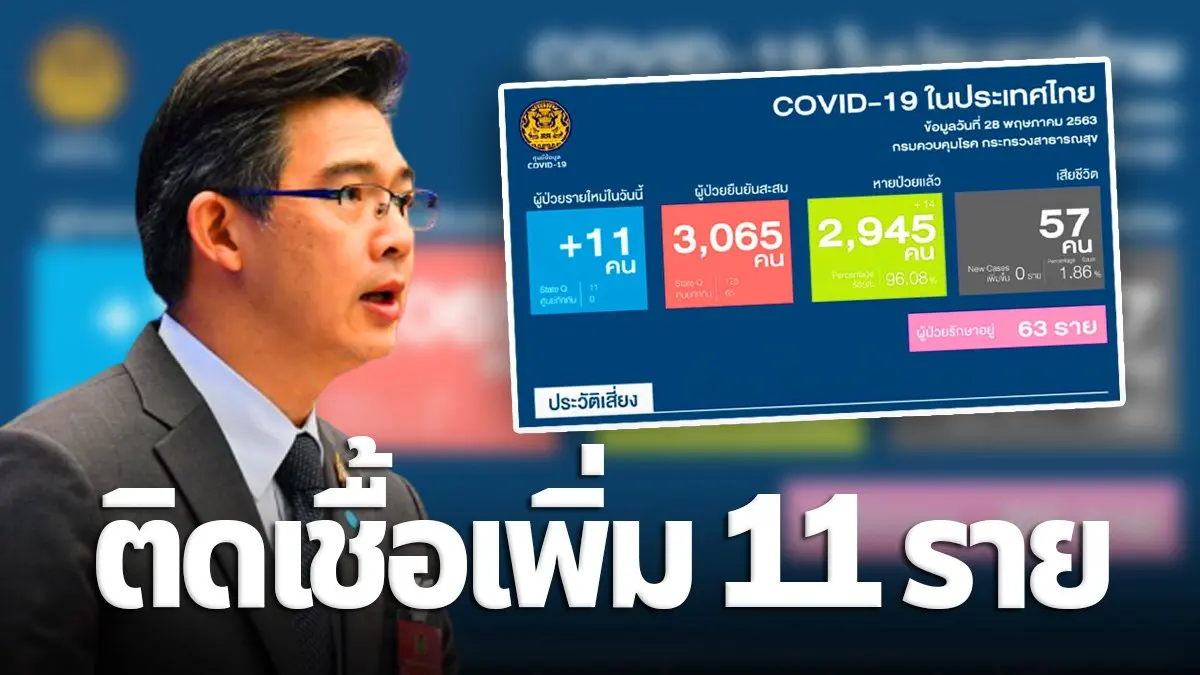วันนี้พบผู้ติดเชื้อ COVID-19 พบมีผู้ป่วยใหม่เพิ่มขึ้น 11 ราย รวมยอดสะสม 3,065 คน