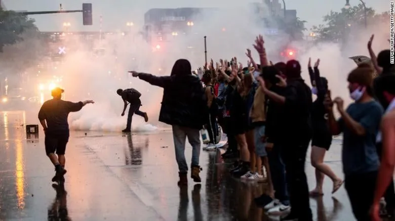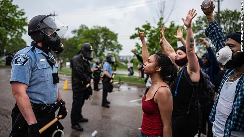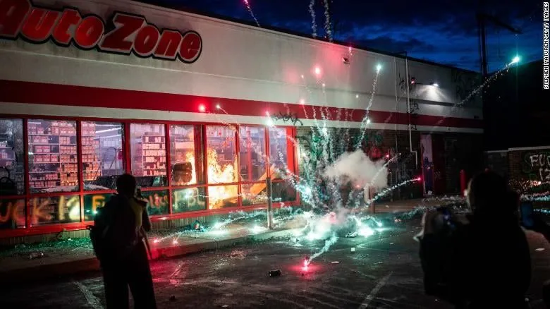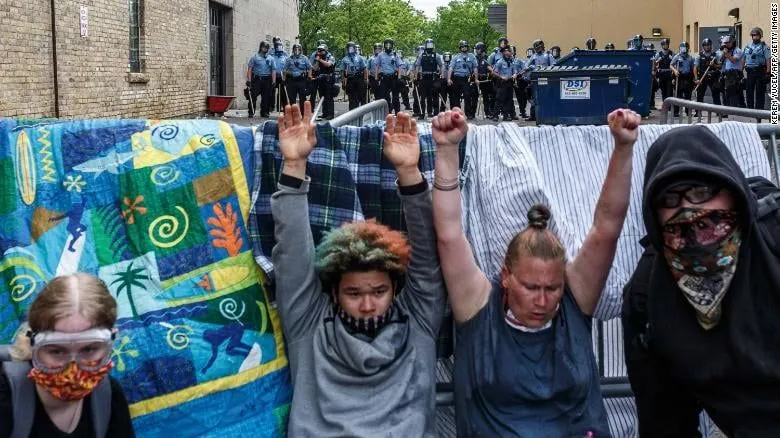 เป็นคืนที่ 2 ที่ กลุ่มผู้ประท้วงในเมืองมินนิแอโพลิส ในรัฐมินนิโซตา ของสหรัฐฯ