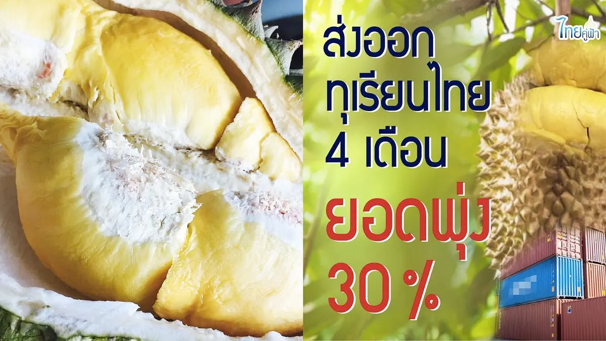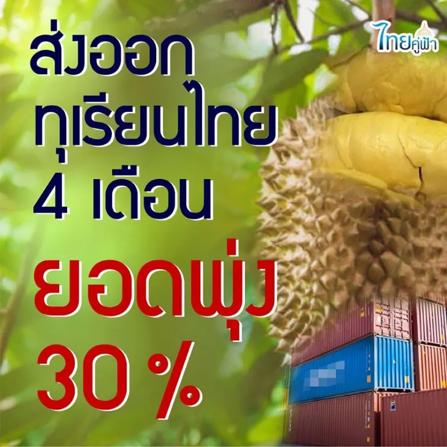 ส่งออกทุเรียนไทย ...4 เดือน ยอดพุ่ง 30 %