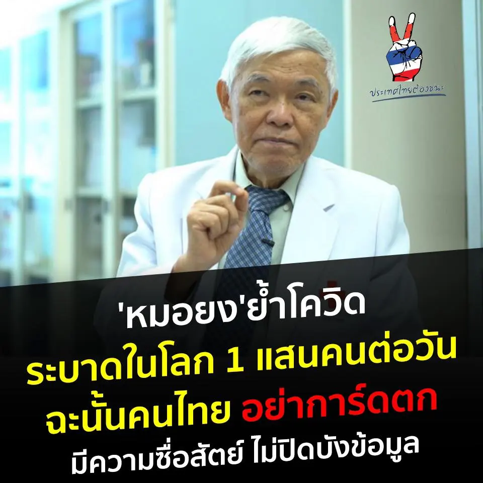'หมอยง'ย้ำโควิดระบาดในโลก 1 แสนคนต่อวัน ฉะนั้นคนไทยอย่าการ์ดตก มีความซื่อสัตย์ ไม่ปิดบังข้อมูล