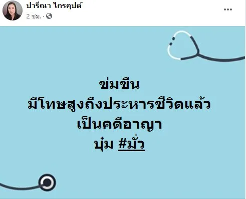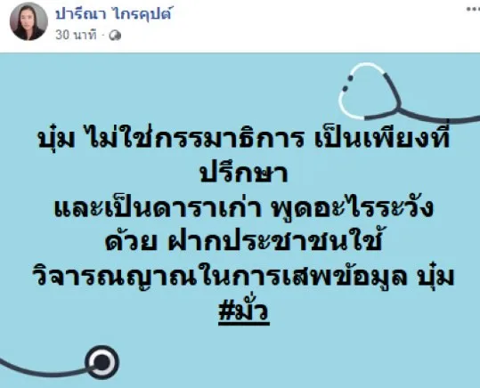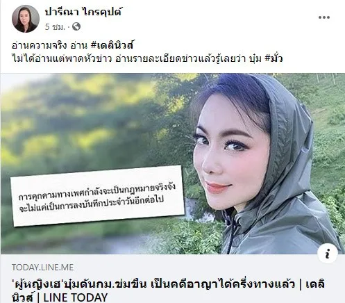 4 มิ.ย. 2563 จากประเด็นร้อนของวันนี้ที่ ดร.บุ๋ม ถูกส.ส.ชื่อดังพาดพิงถึง ปมกม.คุกคามทางเพศ จนเกิดดราม่า และส.ส.ปารีณาก็ได้ออกมาชี้แจงประเด็นดังกล่าวว่า เป็นเพราะบุ๋ม ปนัดดา โพสต์ข้อความในทำนอง การข่มขืนหรือการคุกคามไม่สามารถดำเนินคดีได้ ทั้งๆที่มีกฎหมายยืนยันชัดเจนว่าสามารถทำได้ และขอให้บุ๋มระวังคำพูดด้วย