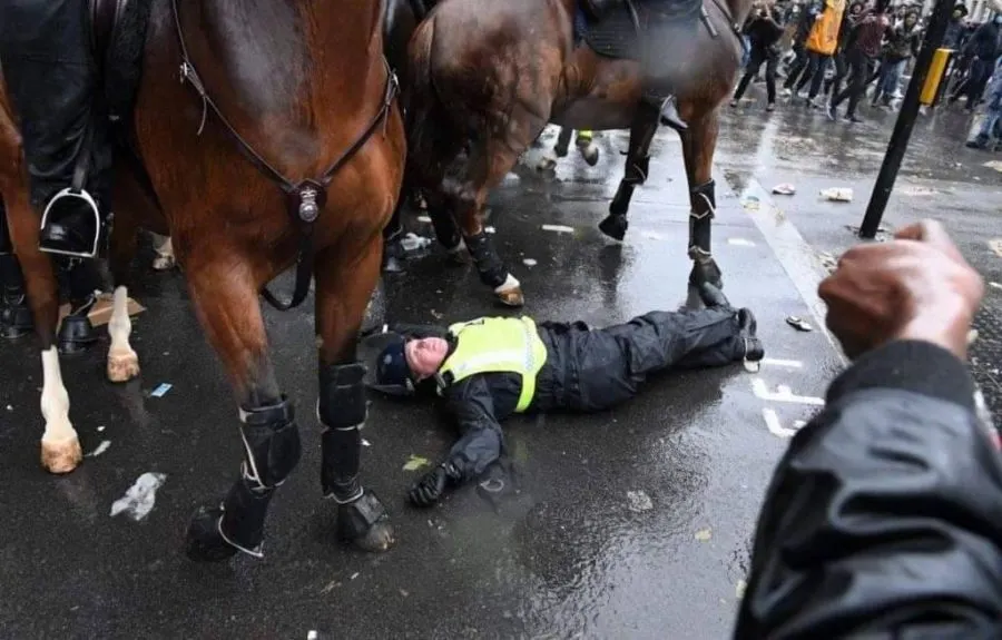 ลอนดอน ตำรวจม้าบาดเจ็บ หลังจากกลุ่มม๊อบได้โจมตีม้า