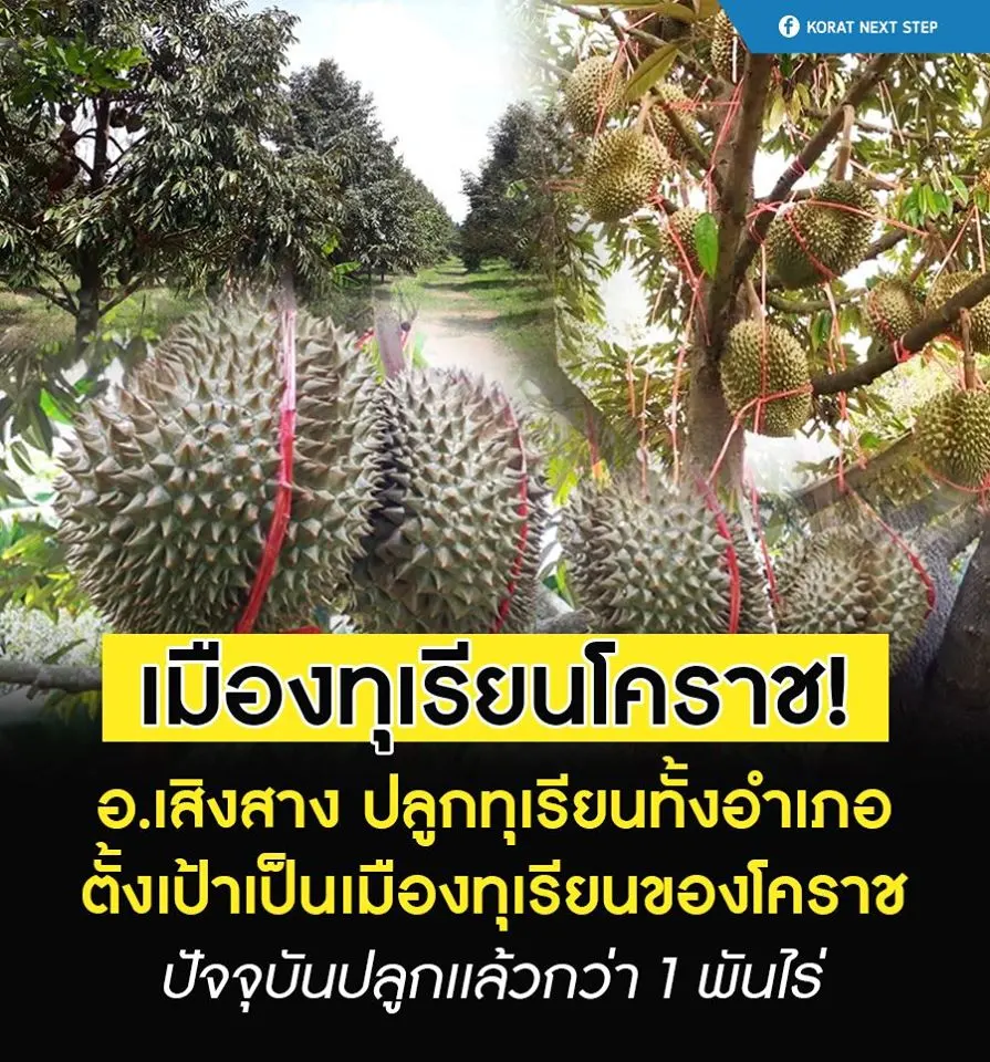 เมืองทุเรียนโคราช อ.เสิงสาง หนุนปลูกทุเรียนทั้งอำเภอ ตั้งเป้าเป็นเมืองทุเรียนของโคราช ใน 3-5 ปีข้างหน้า ปัจจุบันปลูกเเล้วกว่า 1 พันไร่