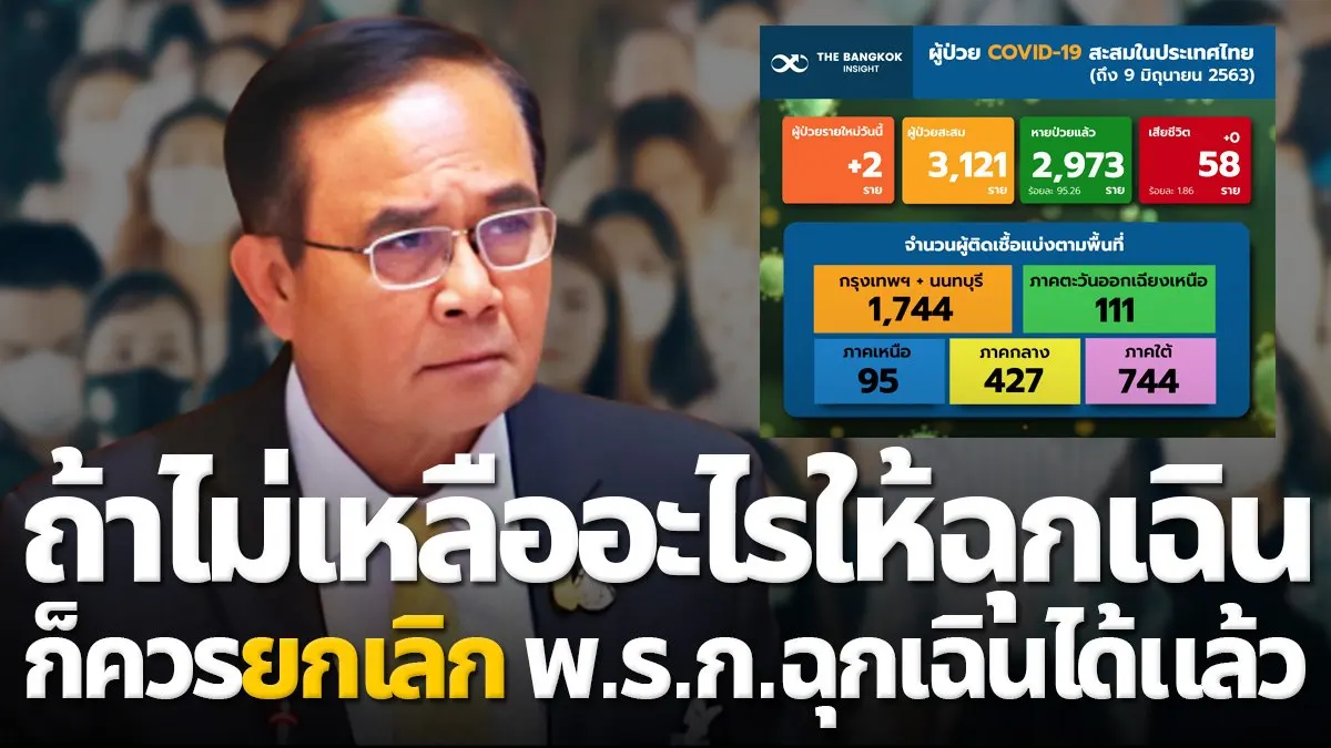 10 มิ.ย. เพจ Gossipสาสุข กระซิบดัง ตอนนี้ควรยกเลิกพ.ร.ก ฉุนเฉินได้แล้ว ยกประเทศที่ผู้ติดเชื้ออยู่หลักสิบ – หลักร้อย ทั่วโลกนั้น แทบจะไม่มีประเทศไหนประกาศใช้ พ.ร.ก.ฉุกเฉิน โดยโพสต์ระบุว่า ถ้าไม่เหลืออะไร “ฉุกเฉิน” ก็ถึงเวลายกเลิก พ.ร.ก.ฉุกเฉิน ได้แล้ว