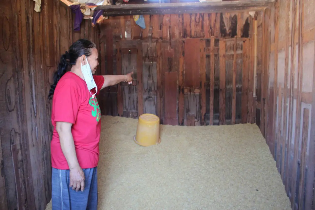 นางปัญญา กล่าวทั้งน้ำตาว่า เหตุโจรขึ้นขโมยข้าวเปลือกในยุ้งฉางไป 2 ตันดังกล่าว เกิดขึ้นเมื่อกลางดึกของคืนวันที่ 30 พ.ค.63 ที่ผ่านมา คาดว่าเวลาประมาณ 22.00 น.-หลังเที่ยงคืน เป็นช่วงเคอร์ฟิว ซึ่งคืนนั้นฝนตกหนัก ทุกคนในบ้านนอนหลับ คนร้ายไม่ทราบจำนวนจึงถือโอกาสขึ้นตัดกุญแจประตูยุ้งฉาง และตักข้าวใส่กระสอบขึ้นรถ