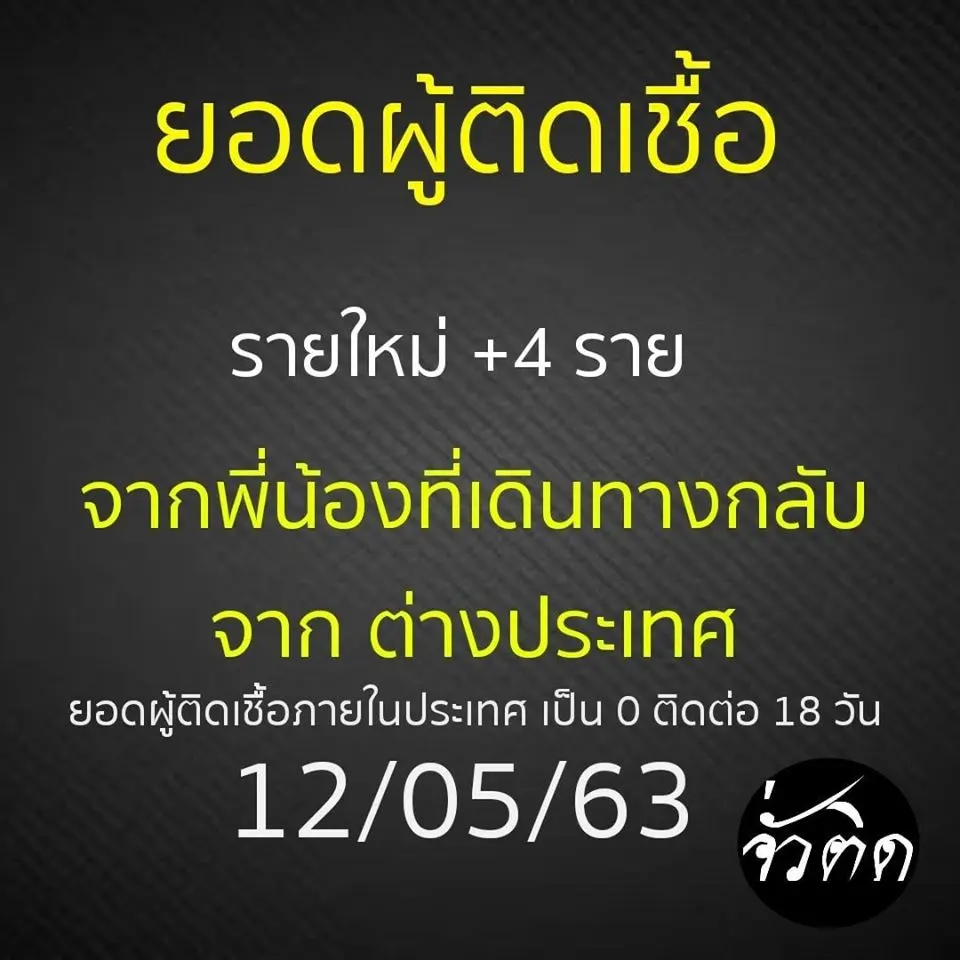 ❓ยอดผู้ติดเชื้อ 12/05/2563👉ภายในประเทศไทย เป็น 0