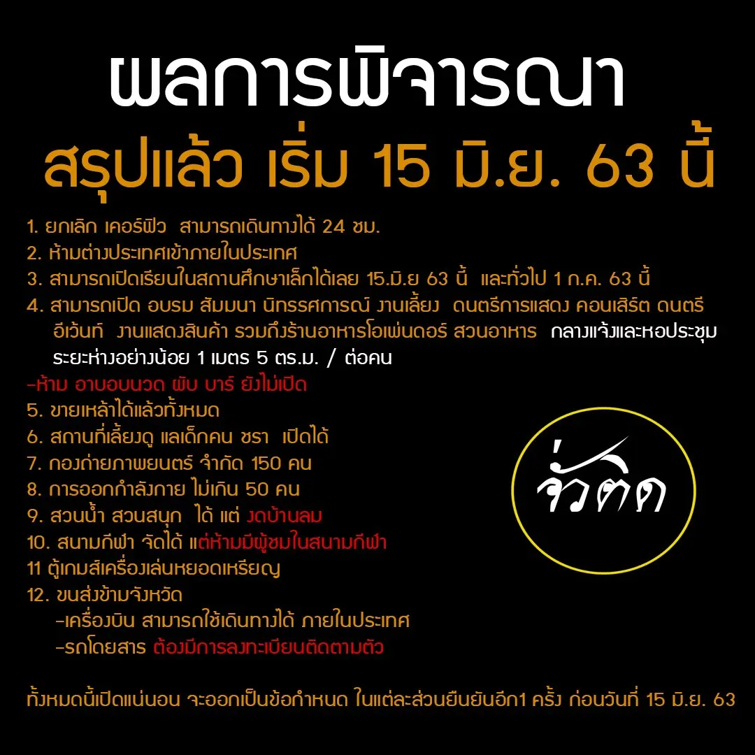 ‼️สรุปแล้ว ผ่อนคลายทั้งหมดนี้เริ้ม 15.มิ.ย. 63