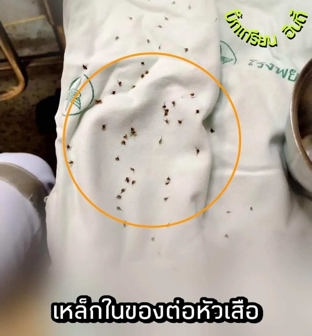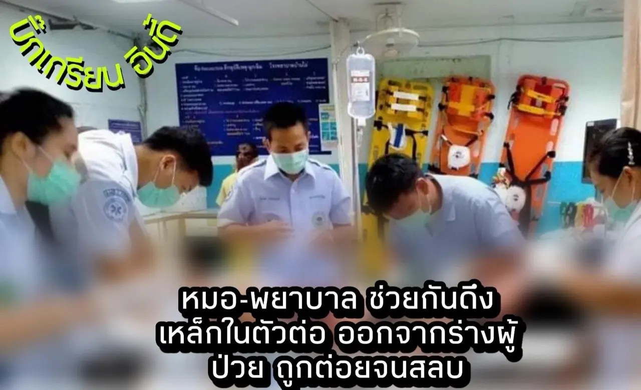 หมอ-พยาบาล โรงพยาบาลบ้านไผ่ จ.ขอนแก่น รีบช่วยกันนำเหล็กในจากตัวต่อ ออกจากตามเนื้อตามตัว ใบหน้า จำนวนมาก ของชายคนหนึ่ง(สงวนชื่อ-นามสกุล)อายุ33ปี