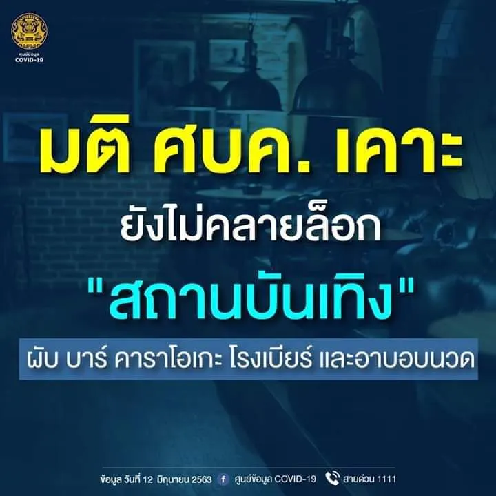 เห็นพร้อม ผับ บาร์ คาราโอเกะ โรงเบียร์ อาบ อบ นวด ยังไม่สามารเปิดทำการได้ ตามก็กำหนด..