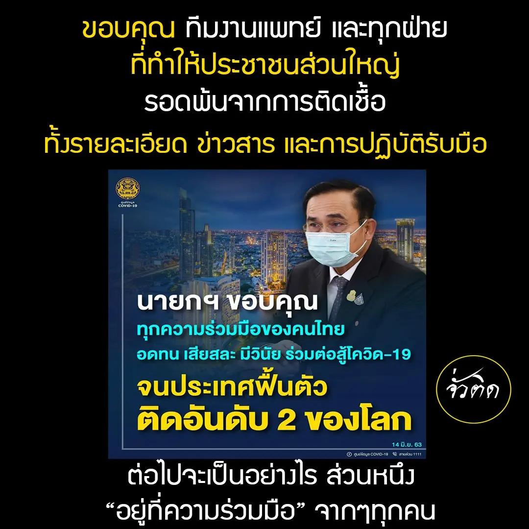 ท่านนายกฯ ขอบคุณคนไทย- ติดอัน2ของโลก!! รับมือโควิด