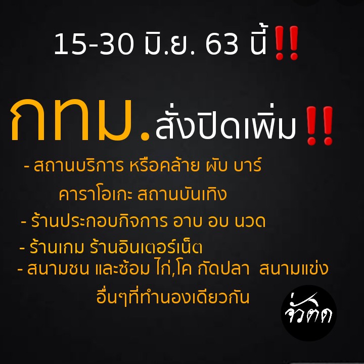 กทม. สั่งปิดเพิ่ม‼ 16-30 มิย.นี้