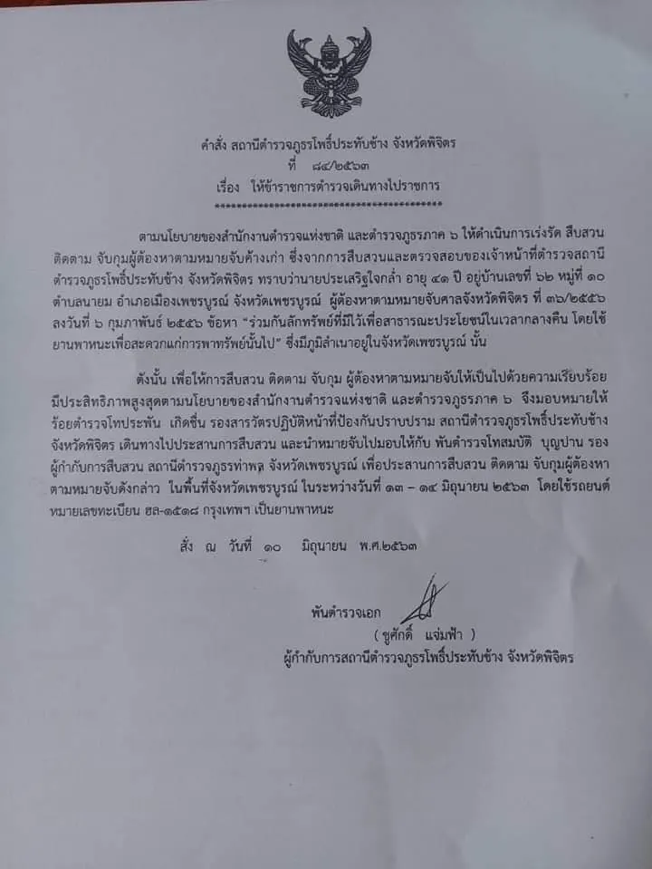 จากนั้นทาง พันตำรวจเอกชูศักดิ์ แจ่มฟ้า ผู้กำกับการหัวหน้าสถานีตำรวจภูธรโพธิ์ประทับช้าง จ.พิจิตร ได้ออกเอกสารชี้แจงเรื่องราวนี้ มีข้อความว่าส่วนหนึ่ง...
