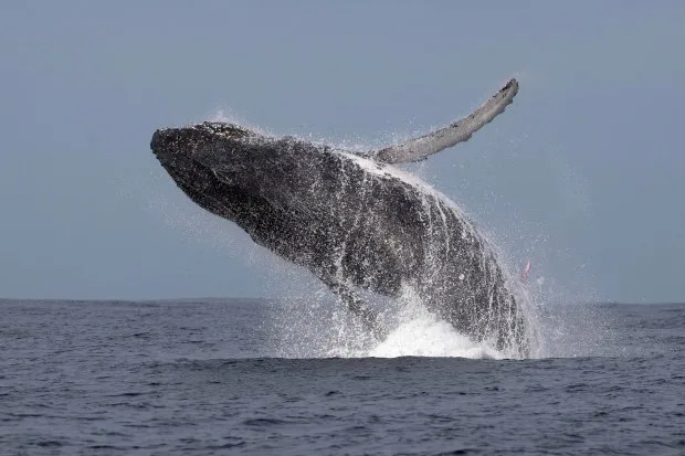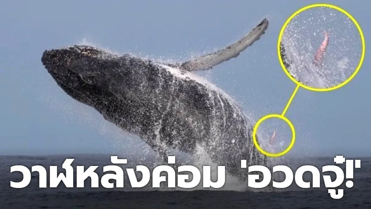 หนึ่งในล้าน! วาฬหลังค่อมหนัก 40 ตัน กระโดดโชว์ตัวเหนือผิวน้ำ เผยให้เห็นจู๋ยาว 10 ฟุต แบบชวนอึ้ง