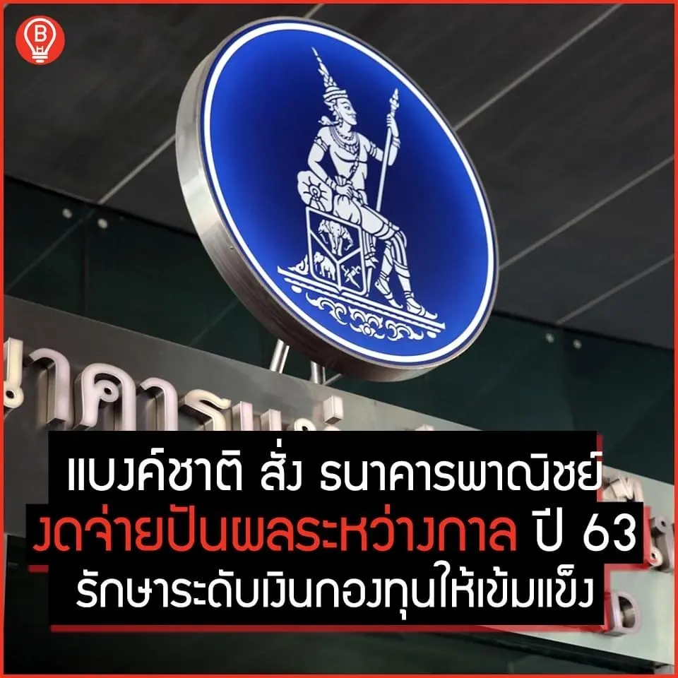 ธนาคารพาณิชย์จะไม่จ่ายปันผลระหว่างกาลในปี 2563 หลังแบงค์ชาติสั่งให้งด!!