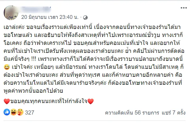 ข้อความล่าสุดจากลูกค้าผู้โพสต์