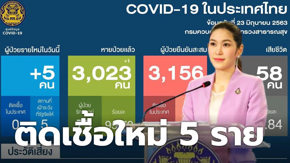 พบผู้ป่วยโควิดใหม่ เพิ่ม 5 ราย เป็นผู้ป่วยที่มาจากต่างประเทศทั้งหมด