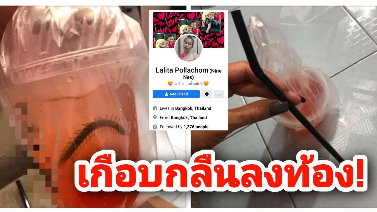 เฟสบุ๊ค lalita polachom โพสต์ภาพสุดสยองเจอตะขาบในแก้มน้ำดื่ม คาดอาตมาจากหลอด