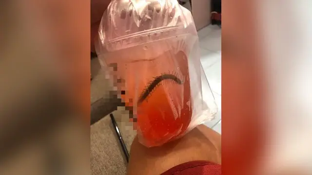 ตนรับหลอดจากลูกมาแล้วใส่ไปข้างถุงแก้ว แล้วลองเคาะๆ ดูว่าคืออะไร ก็ถึงกับตกใจเพราะเจอ ตะขาบ ตัวเป็นๆ เลยเอาถุงที่ใส่หลอดมาดู พบว่ารอยซีลมันแตกออกเลยทำให้ตะขาบเข้าไปอยู่ในนั้น