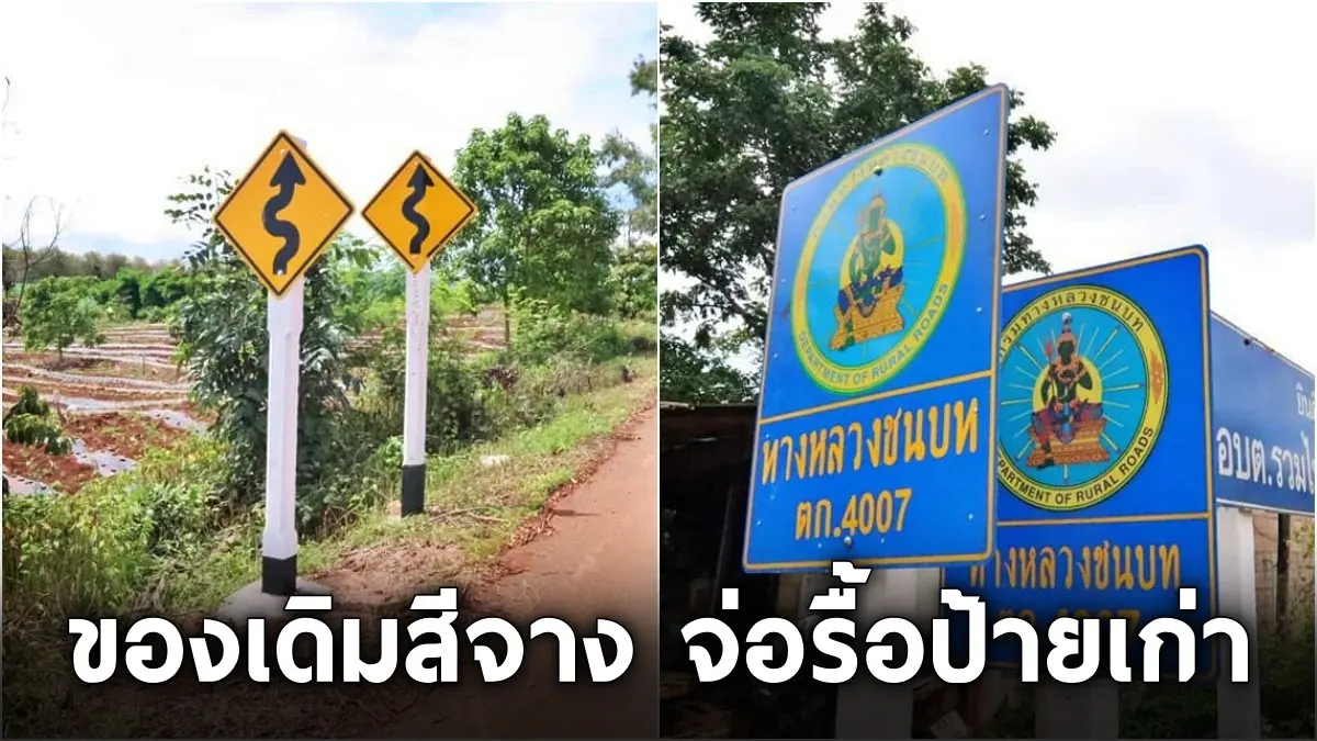 ของเดิมสีจาง จ่อรื้อเอาป้ายเก่าออก ดราม่าทางหลวงชนบท ติดตั้งป้ายจราจรซ้อนป้ายเก่า