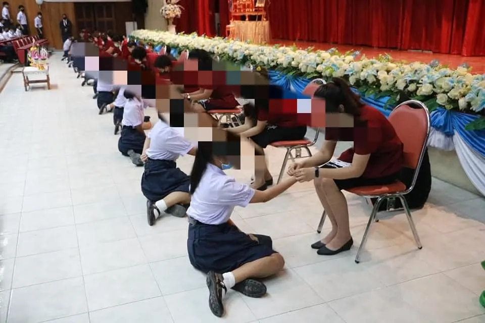 ชาวเน็ตว่าไง โรงเรียนจัดงานปฐมนิเทศ ผุดภาพเด็กๆเรียงรายหมอบกราบ แทบเท้าอาจารย์