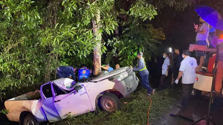 เบื้องต้นที่เกิดเหตุเจ้าหน้าที่พบรถยนต์กระบะโตโยต้า รุ่นวีโก้หมายเลขทะเบียน 2 ฒค.2948 กรุงเทพมหานคร เสียหลักอัดกับต้นไม้ริมทาง ในท้องที่หมู่ที่ 12 เขาชัยสน ที่เกิดเหตุพบผู้เสียชีวิตคือนางสางภัทรานิษฐ์ ขาวนุ่ม อายุ 28 ปี อัดติดอยู่กับซากรถ ส่วนนายไพรัช สังข์รัตน์ อายุ 29 ปี คนขับได้รับบาดเจ็บอาการสาหัส ตัวนี้อยู่โรงพยาบาลเขาชัยสน