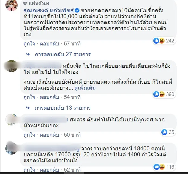 คดีนี้มีการขายทอดตลาดมาแล้วถึง 10 นัด แต่ไม่มีผู้เข้าสู้ราคา จำเลยที่ 3 ซึ่งทราบกำหนดวันขายทอดตลาดโดยชอบแล้วไม่เคยมาดูแลการขายหรือมาติดต่อกับเจ้าพนักงานบังคับคดีเพื่อขอไกล่เกลี่ยข้อพิพาทแต่อย่างใด จนกระทั่งในการขายทอดตลาดครั้งที่ 11 เมื่อวันที่ 23 มิถุนายน 2563 มีบุคคลภายนอกได้ซื้อทรัพย์ดังกล่าวไปในราคา 30,000 บาท ซึ่งผู้ซื้อทรัพย์ดังกล่าวจะต้องรับภาระในการไปชำระหนี้จำนองอีกเป็นเงินกว่า 2 ล้านบาท.....