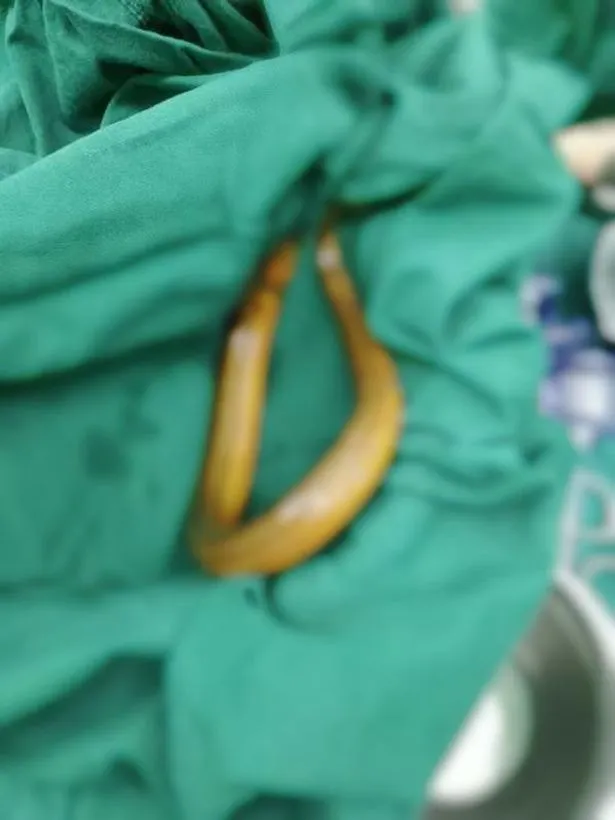 จากคลิปวิดีโอที่น่ากลัวนี้แสดงให้เห็นว่า แพทย์ได้ผ่าตัดนำปลาไหลขนาด 15 นิ้ว ออกมาจากช่องท้องของผู้ป่วยในสภาพที่ตายไปแล้ว และมันทำให้เกิดการปนเปื้อนของแบคทีเรียอย่างรุนแรงในช่องท้อง อุจจาระมีการรั่วไหลเข้าสู่ร่างกายของผู้ป่วย เนื่องจากการแตกในลำไส้ใหญ่ sigmoid หรือที่เรียกว่าลำไส้ใหญ่เชิงกราน ซึ่งเป็นส่วนของลำไส้ใหญ่ใกล้กับทวารหนัก