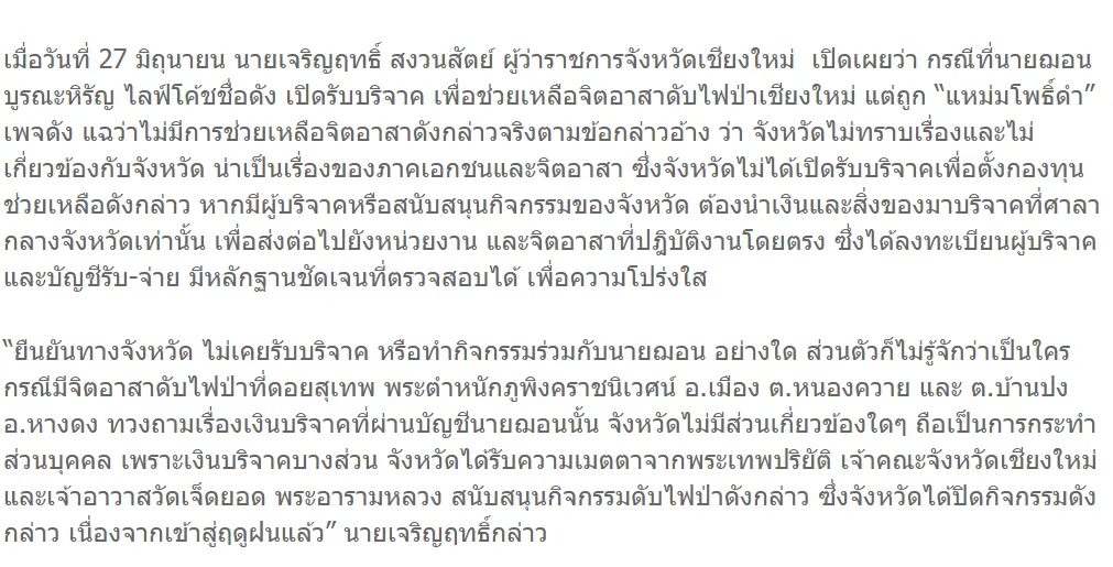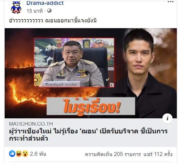 ล่าสุดDrama-addict โพสต์ข่าว "ผู้ว่าฯเชียงใหม่ ไม่รู้เรื่อง ‘ฌอน’ เปิดรับบริจาค ชี้เป็นการกระทำส่วนตัว"