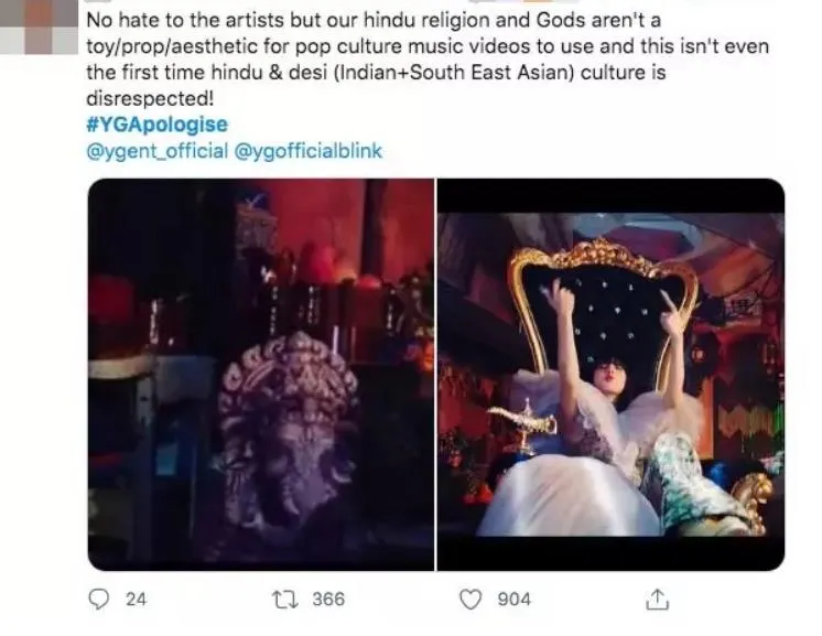 แฟนคลับชาวอินเดียทวีตข้อความไม่พอใจฉากที่นักร้องสาวชาวไทย ลิซ่า ลลิษา มโนบาล หรือ ลิซ่า Blackpink ร้องแร็ป แต่ในฉากดังกล่าวกลับมีรูปปั้นพระพิฆเนศ (Ganesha) ตั้งอยู่บนพื้น และตอนที่ลิซ่านั่งร้องแร็ปอยู่บนบัลลังก์ทองนั้น รองเท้าของลิซ่าอยู่ระดับเดียวกับพระพิฆเนศพอดี ชาวอินเดียมองว่าเป็นการลบหลู่