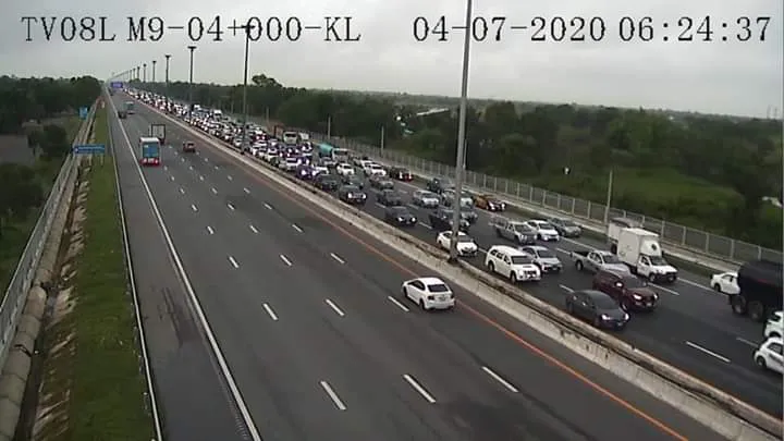 การจราจรติดขัด ทำให้รถออกจากมอเตอร์เวย์ สาย9 มีท้ายแถว 6 กม. #รถติด