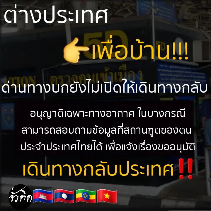 👉สำหรับแรงงานต่างประเทศเพื่อบ้านที่ต้องการเดินทางกลับด่านทางบก ยังไม่เปิดให้เดินทางกลับ
