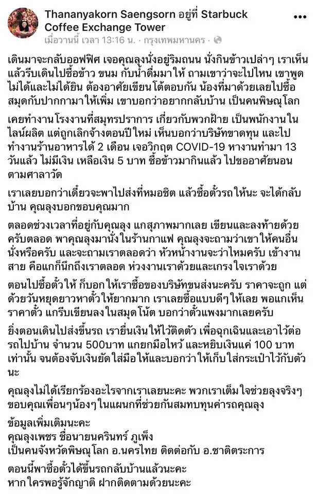 สุดสะเทือนใจ!! สาวเผยเรื่องราว โควิดทำลุงตกงาน บัตรคนพิการถูกลัก เหลือเงินติดตัวแค่ 5 บาท