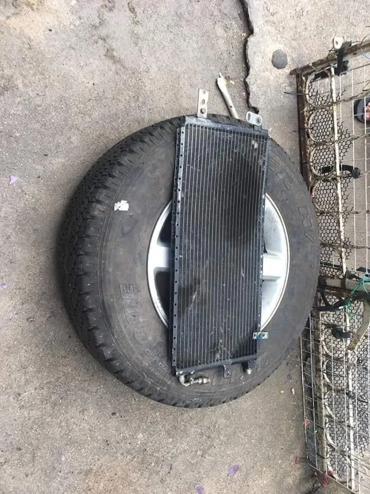 #แล้วเอาศพยัดไว้ในล้อยางรถยนต์ใช้แผงหม้อน้ำทับศพไว้