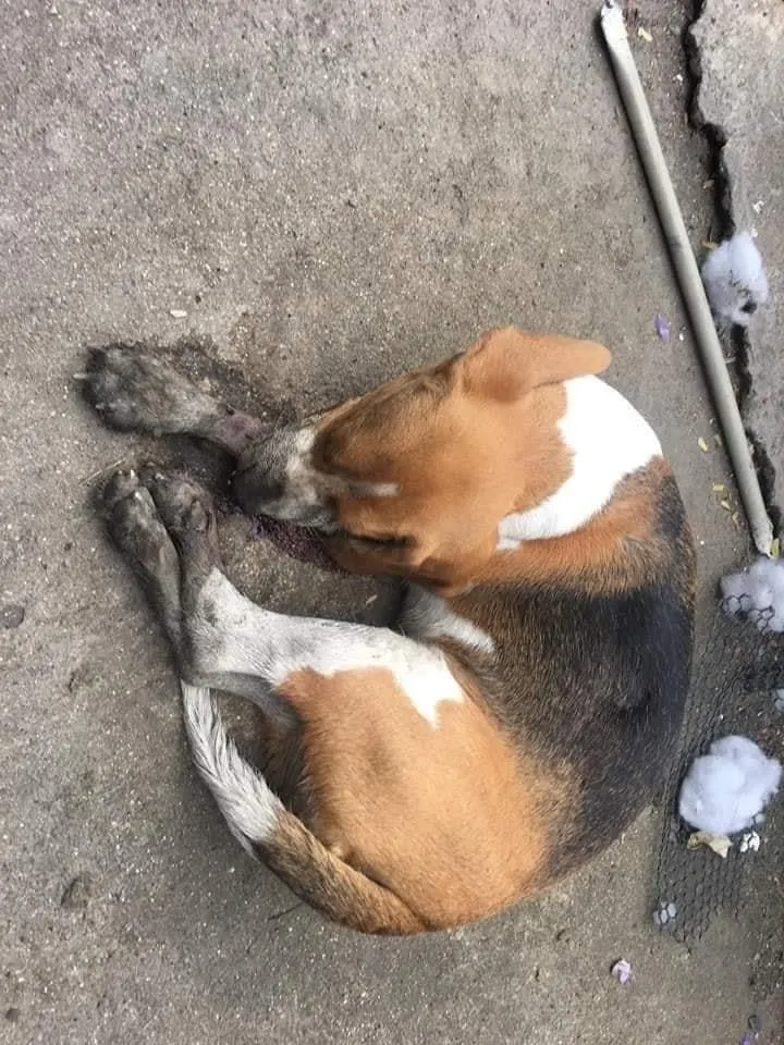 สะทือนใจ!! หมาน้อยถูกฆ่าศพยัดในล้อยางรถยนต์ใช้แผงหม้อน้ำทับ ทรมาน ดิ้นทุรนทุรายจนตาย